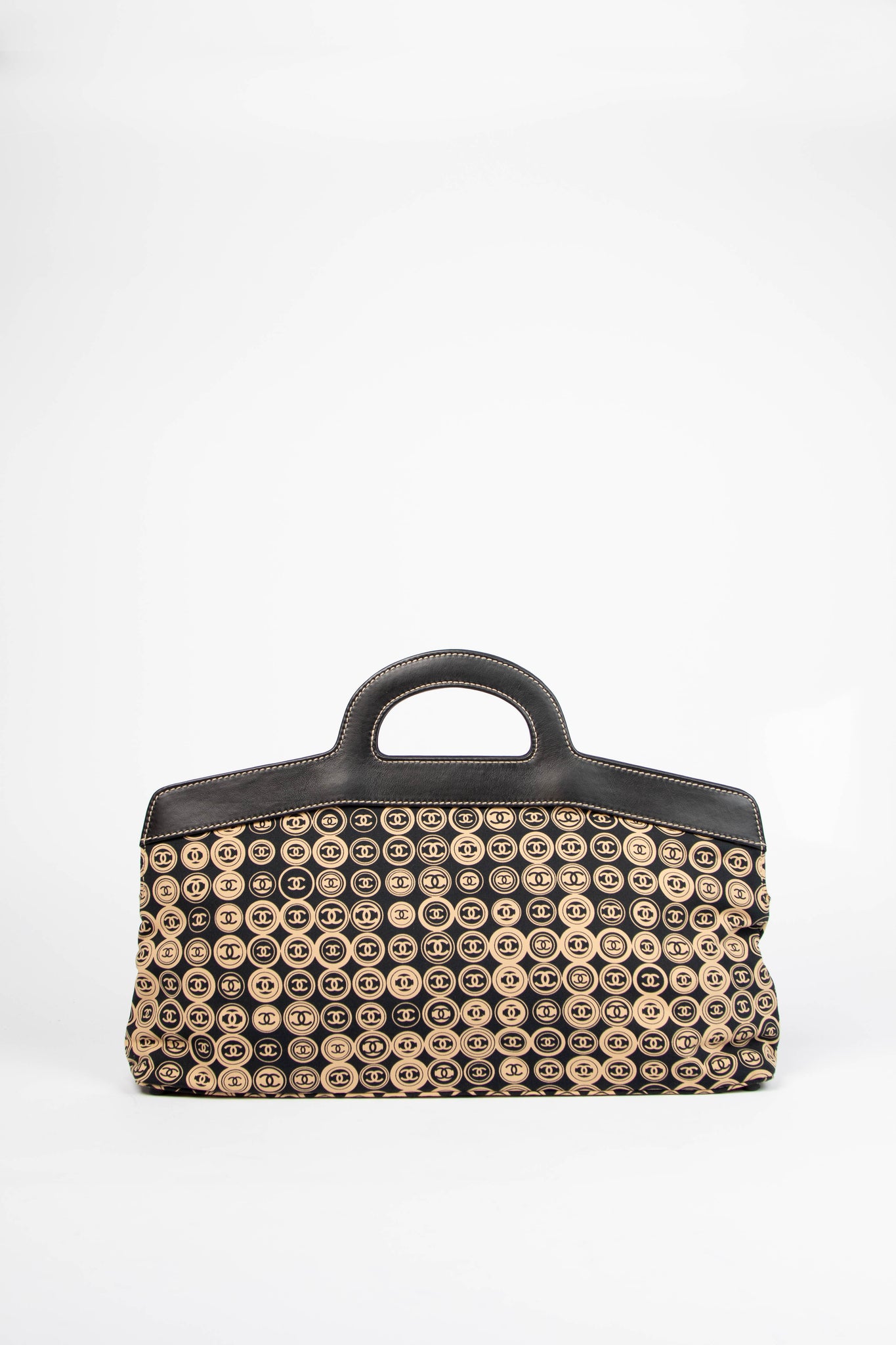2000s Chanel Black & Beige Jersey Top Handle Tote Bag