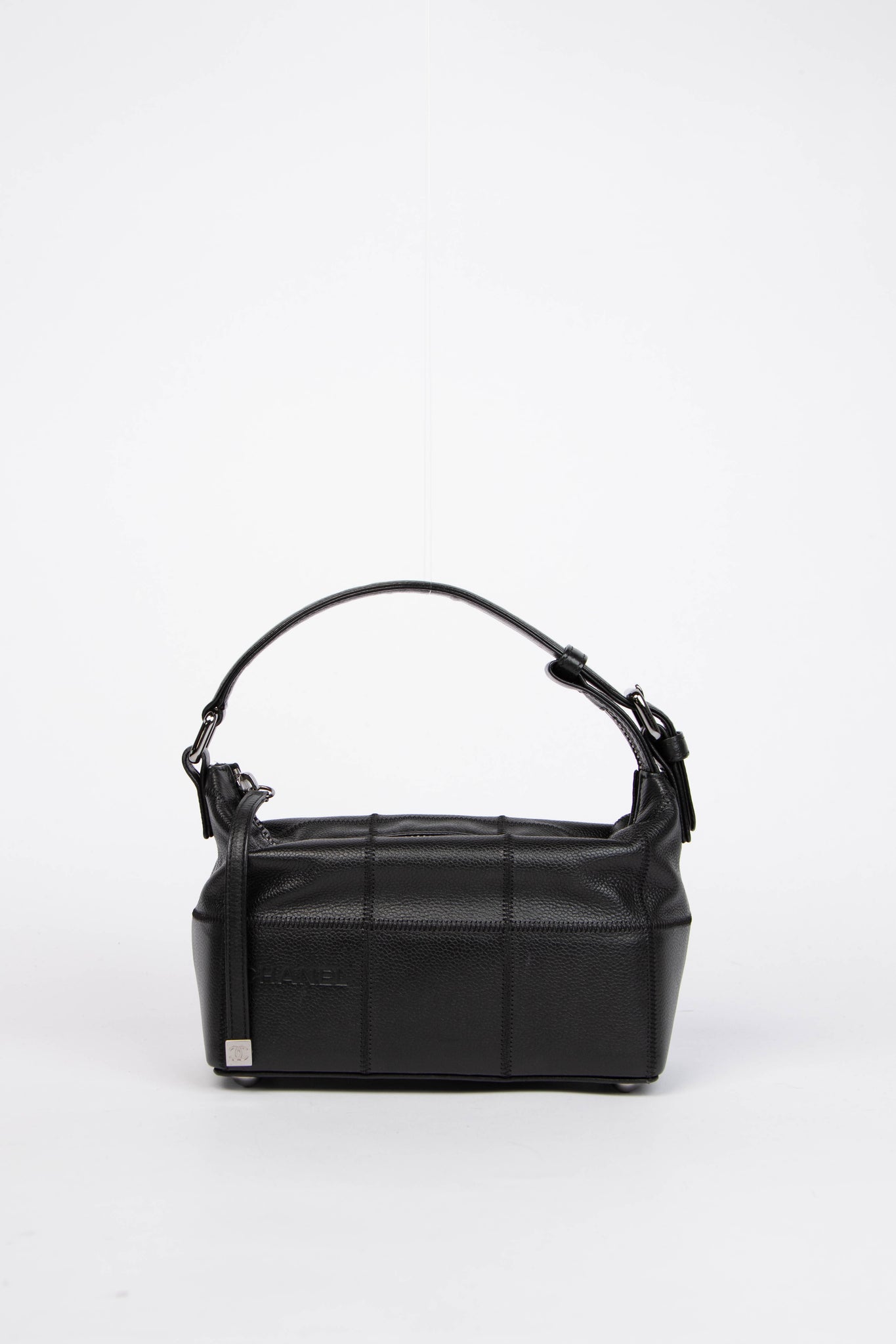 2000s Chanel Black Caviar Leather Chocolate Bar Top Handle Bag