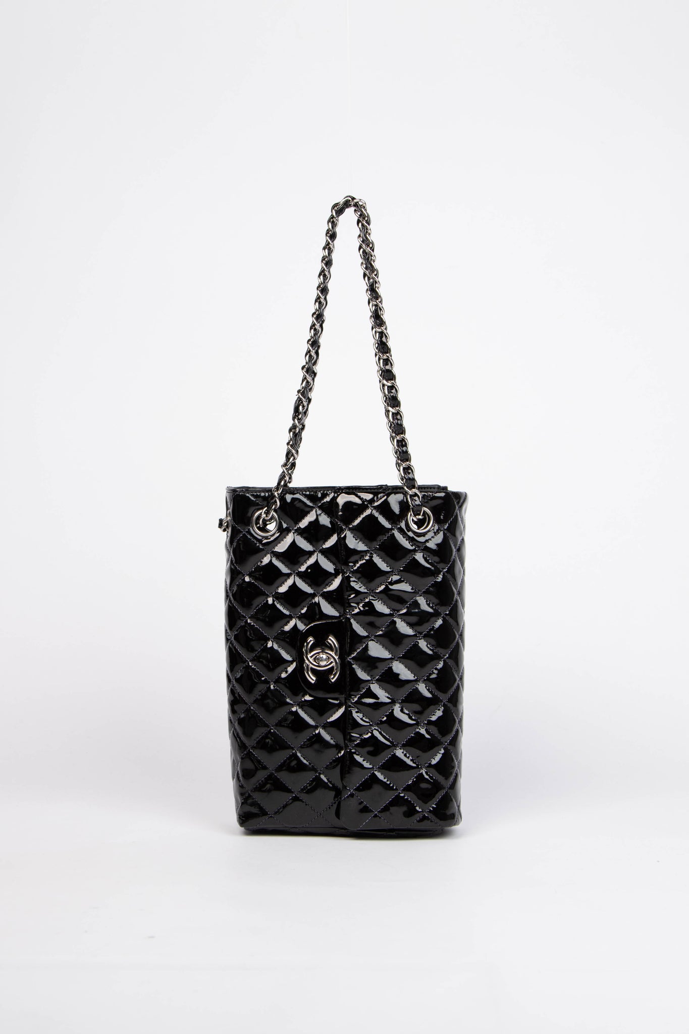 2000s Chanel Black Patent Leather Sideways Flap Shoulder Bag