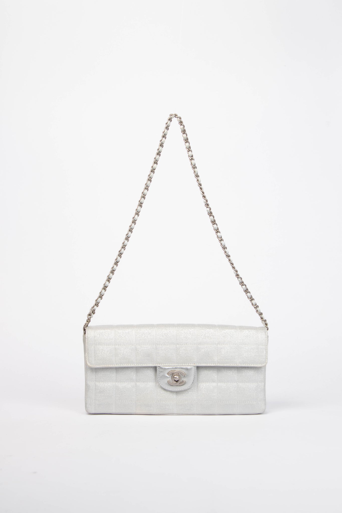 2000s Chanel Silver Travel Line East West Shoulder Bag