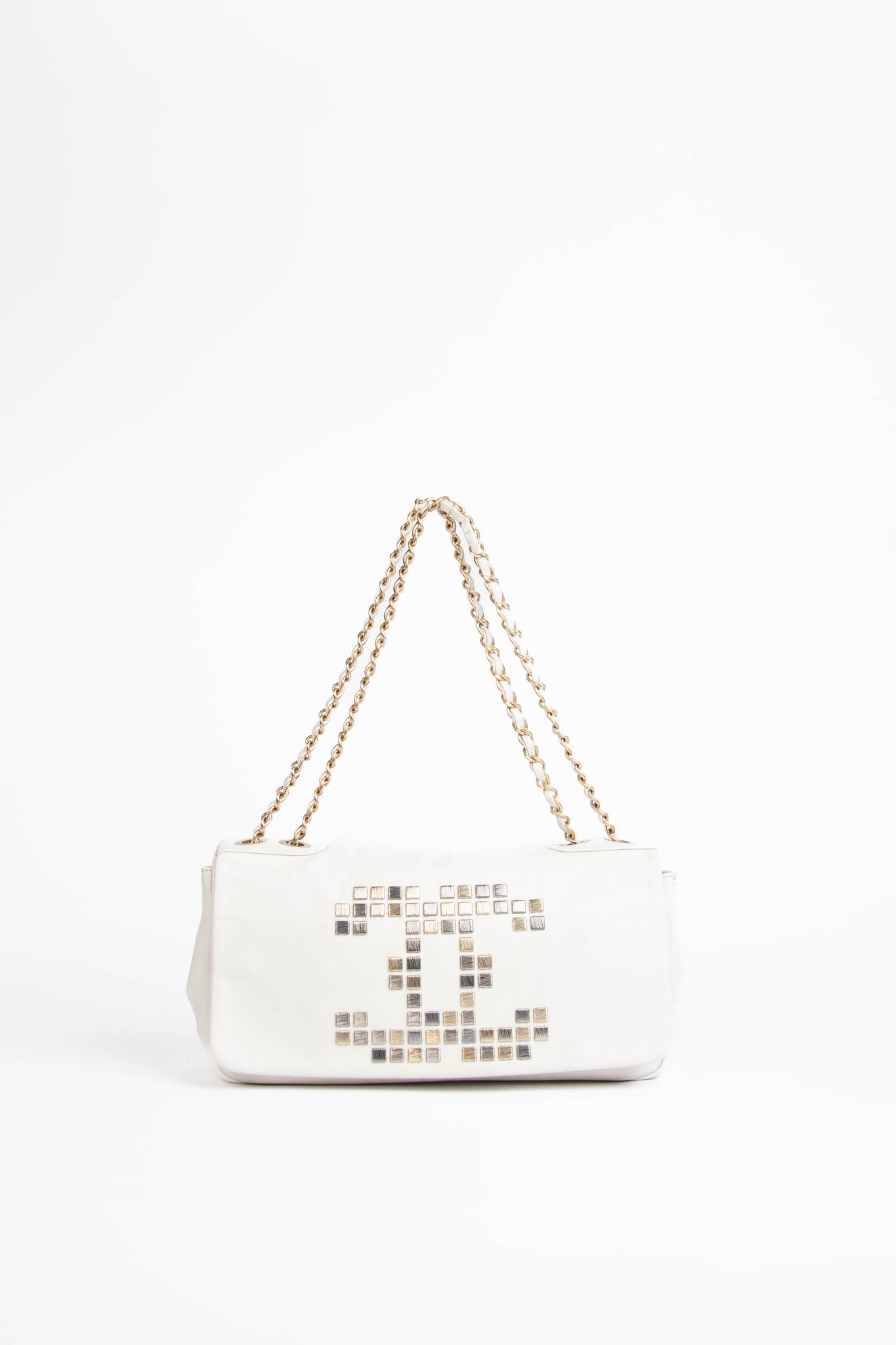 2000s Chanel White Mosaic East West Single Flap Shoulder Bag