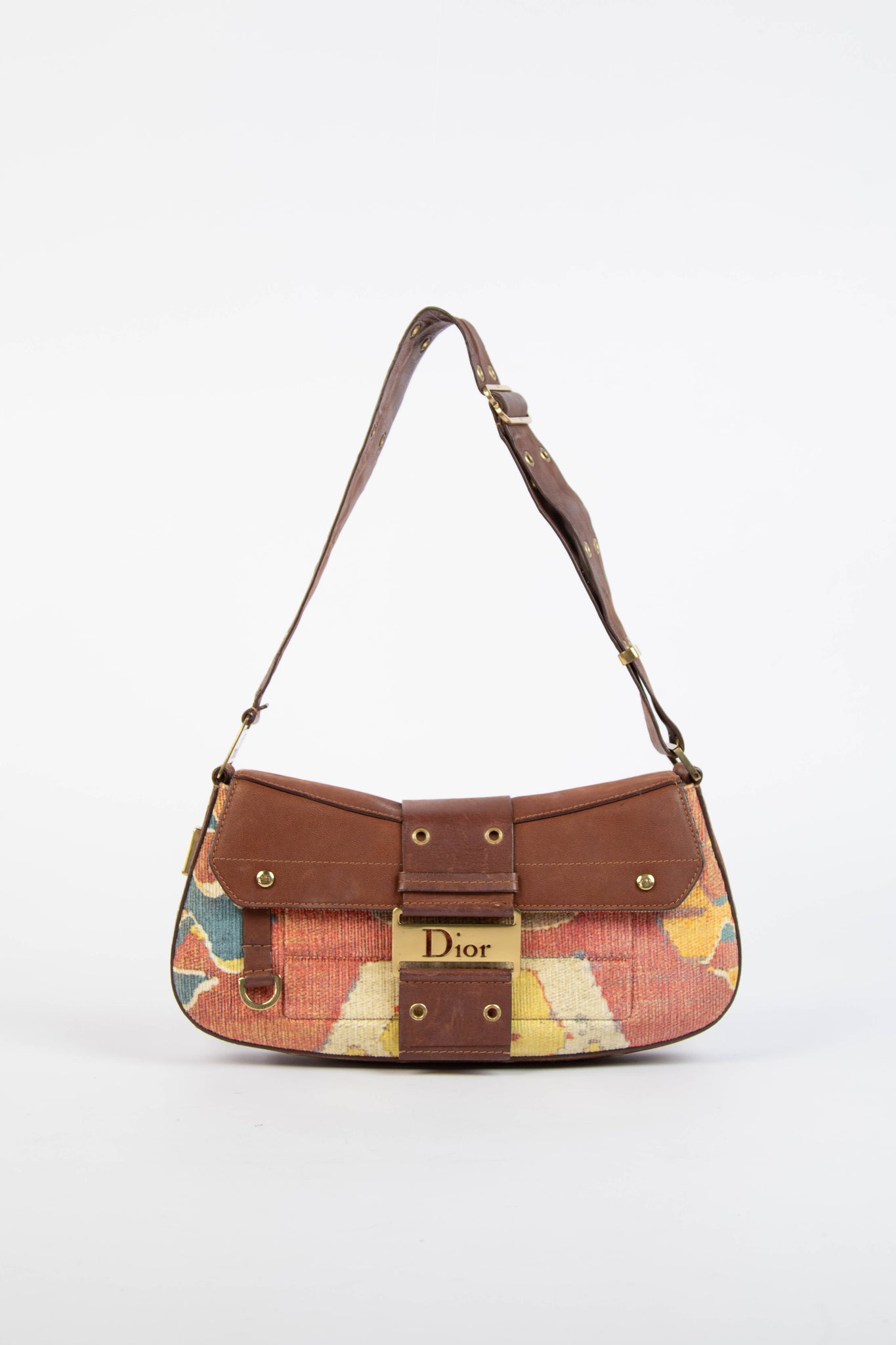 2000s Christian Dior Multicolour Velvet and Leather Columbus Shoulder Bag
