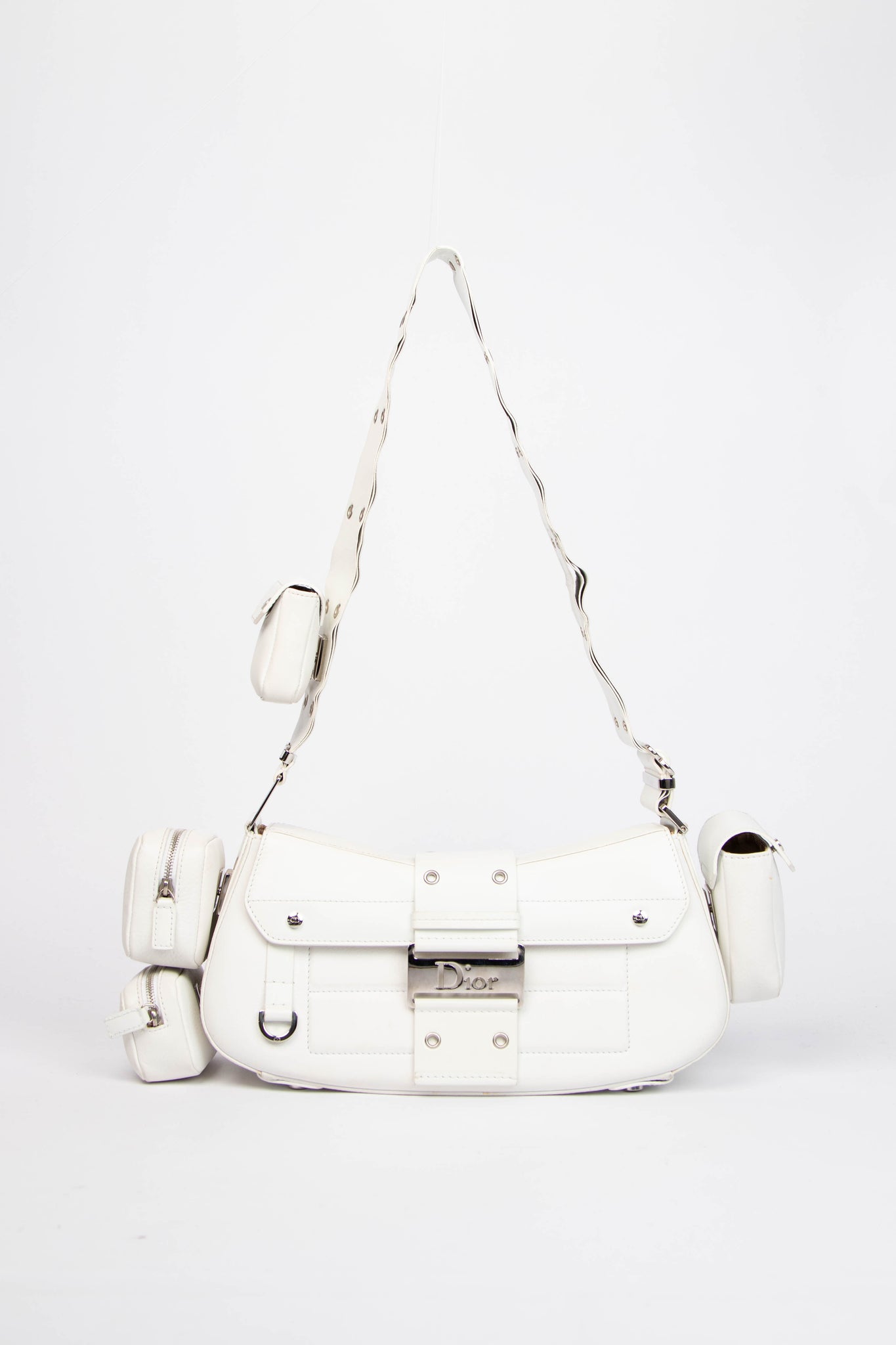 2000s Christian Dior White Leather Columbus Shoulder Bag