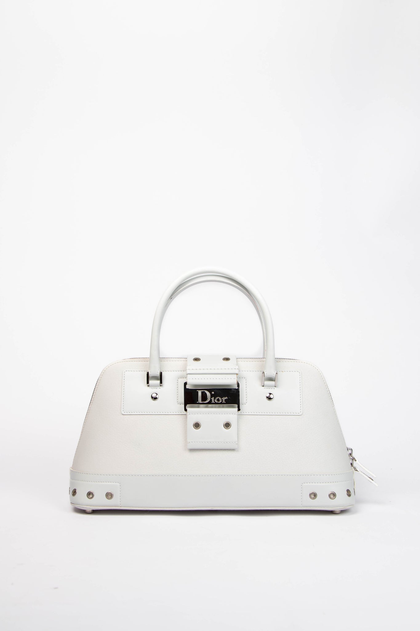 2000s Christian Dior White Leather Street Chic Tote Bag