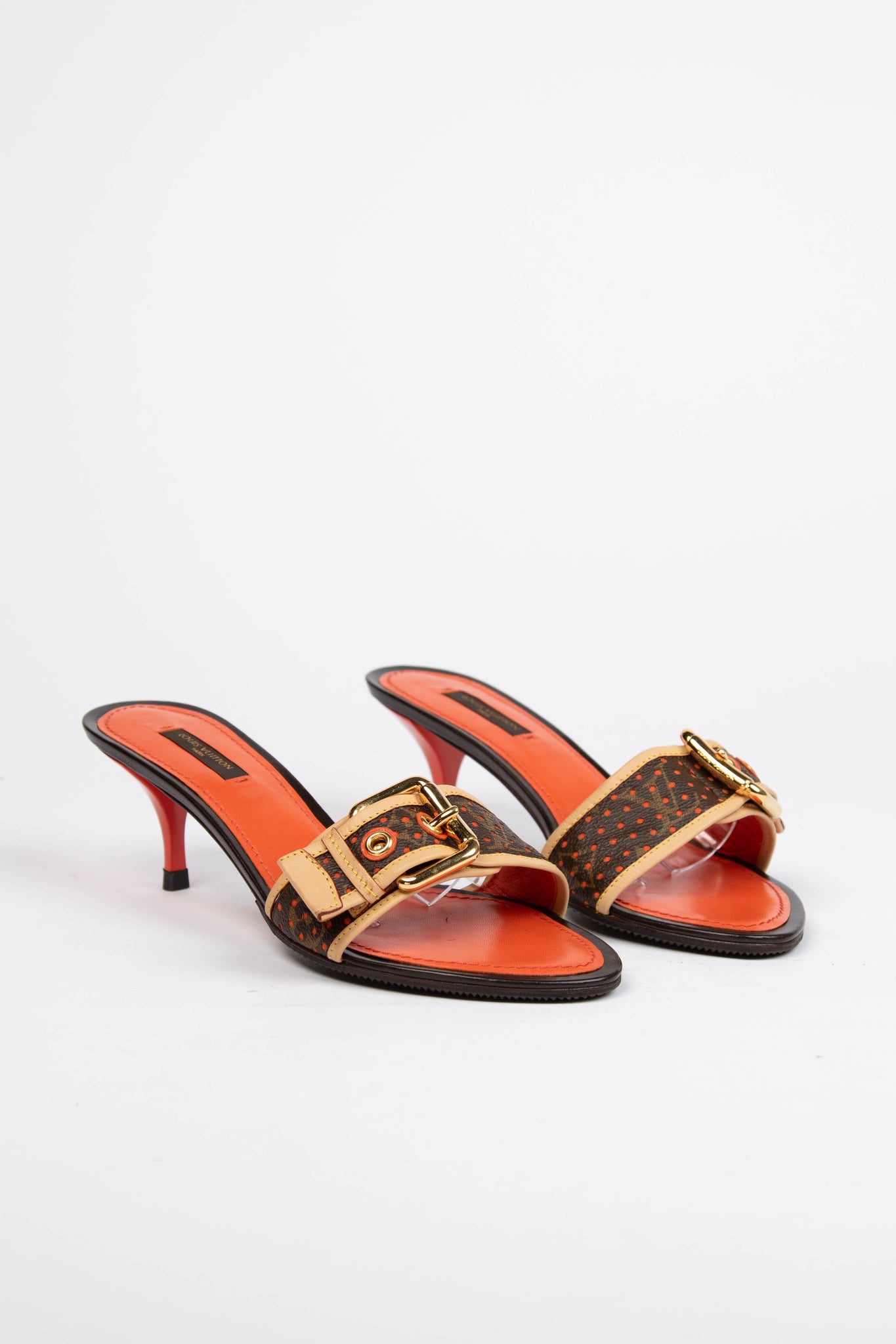 2000s Louis Vuitton Perforated Monogram Buckle Mules (EU 38)