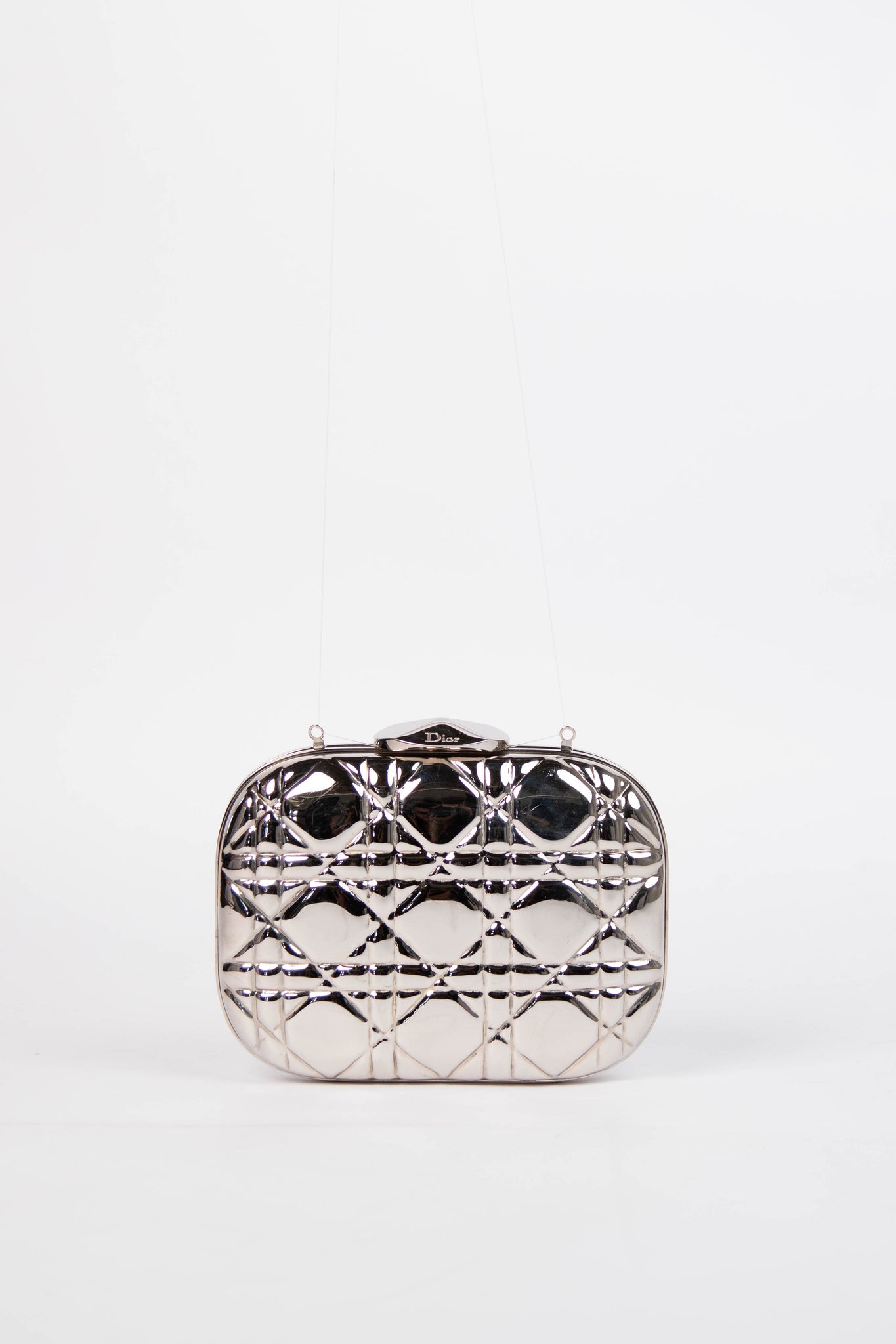 2010s Christian Dior Silver Minaudière Clutch Bag