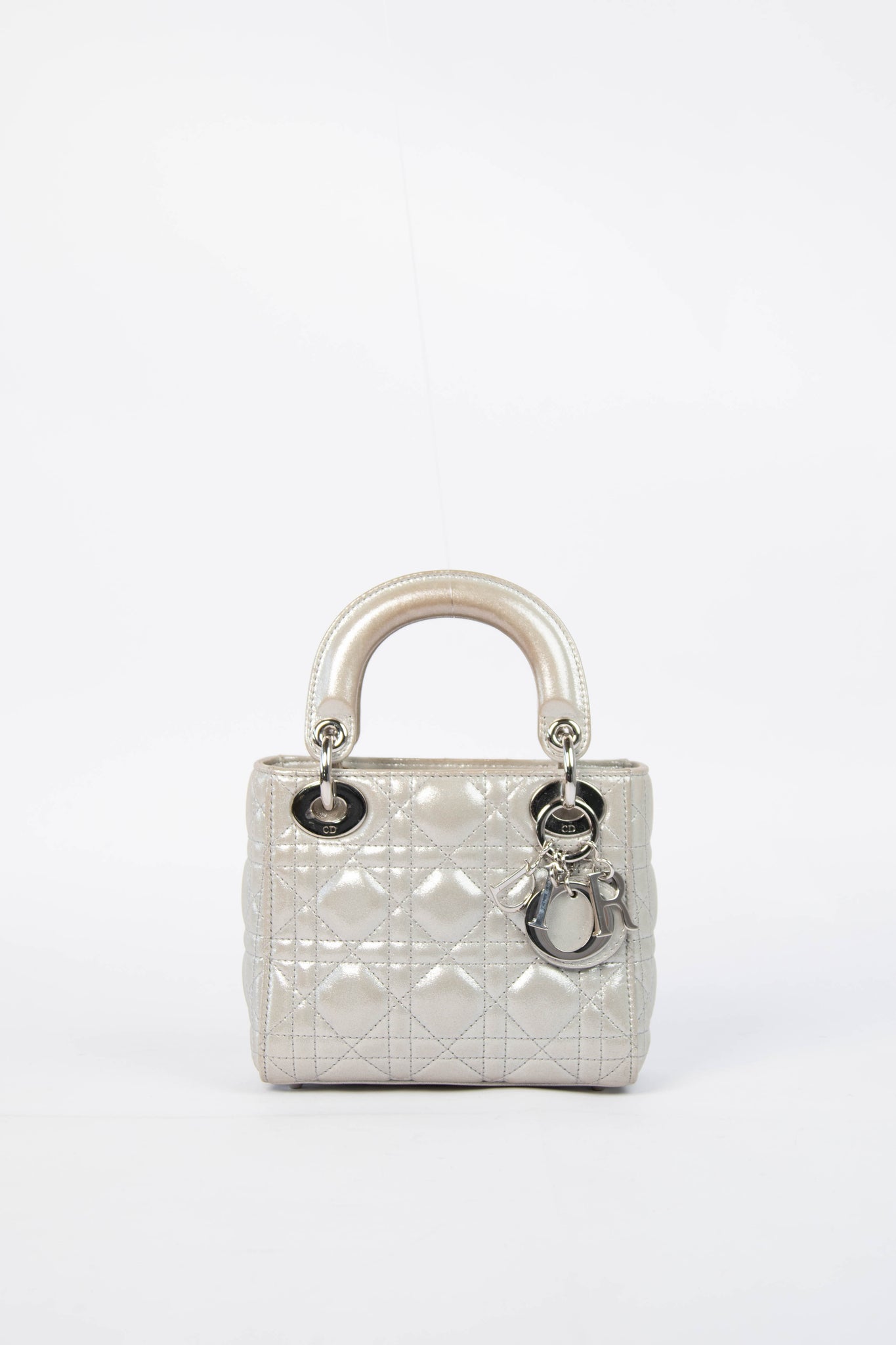 2015 Christian Dior Pearlescent Silver Mini Lady Dior