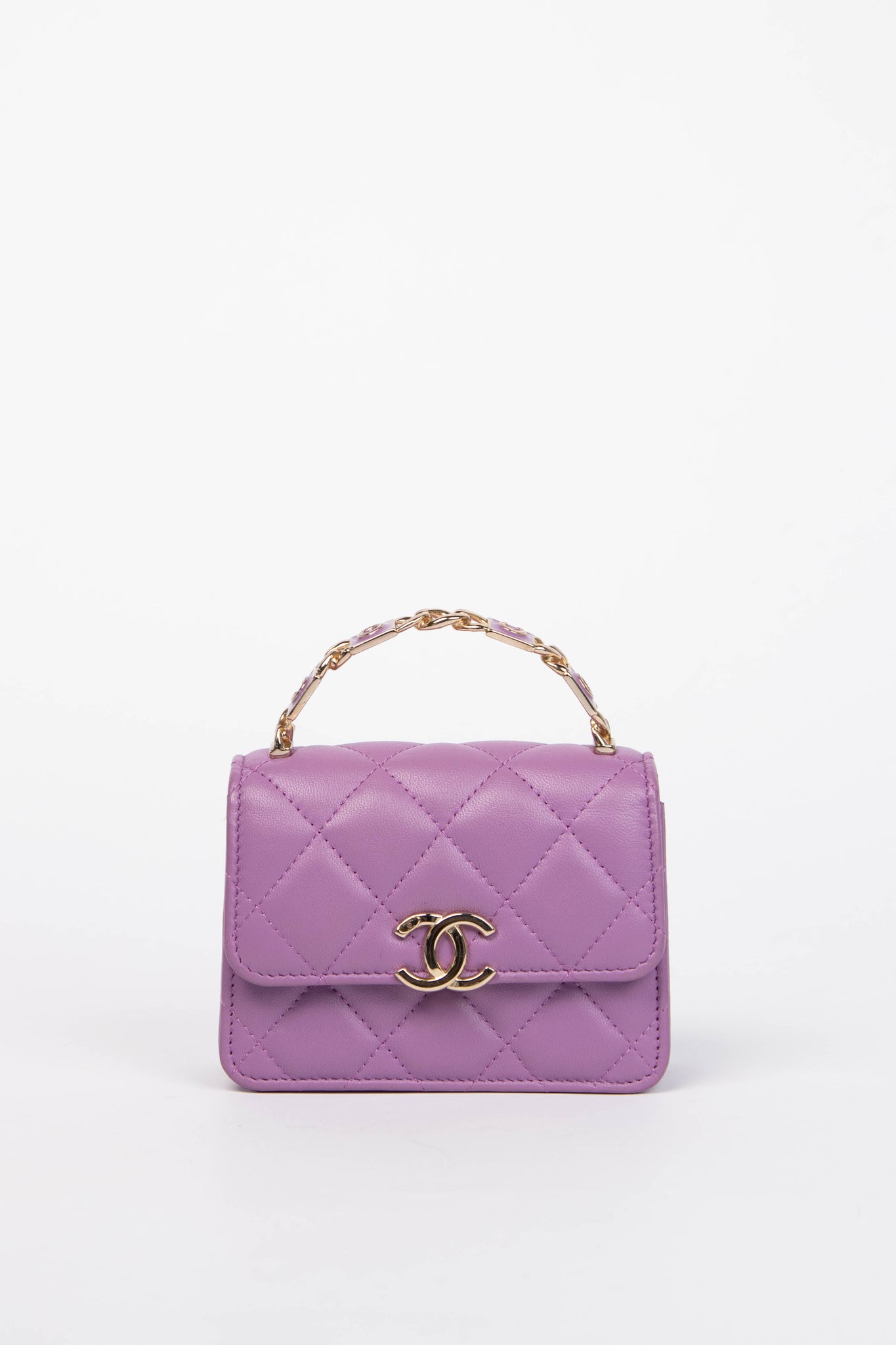 2020s Chanel Purple Caviar Leather Coco Mini Top Handle