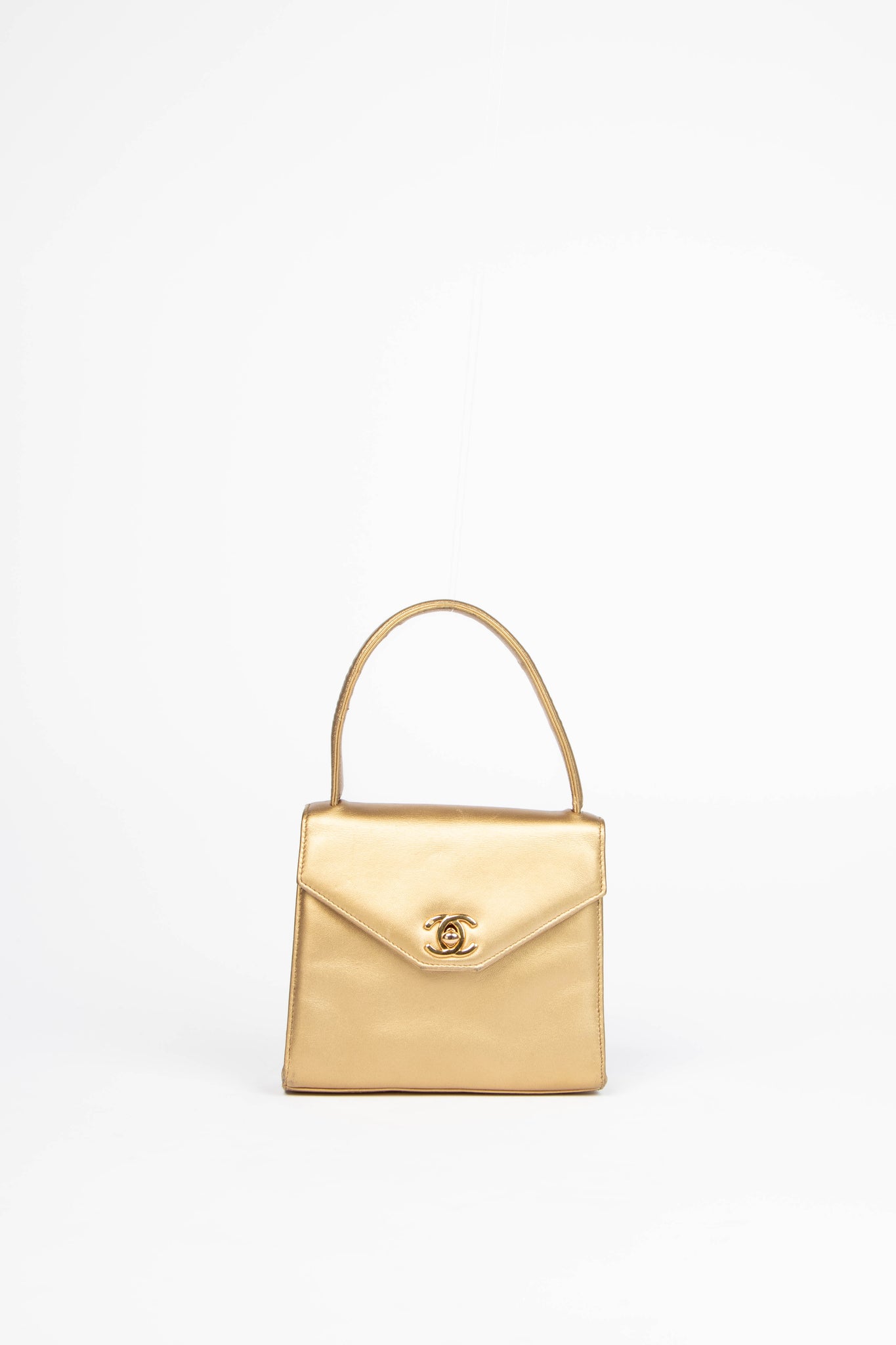 90s Chanel Gold Lambskin Leather Envelope Small Top Handle Bag