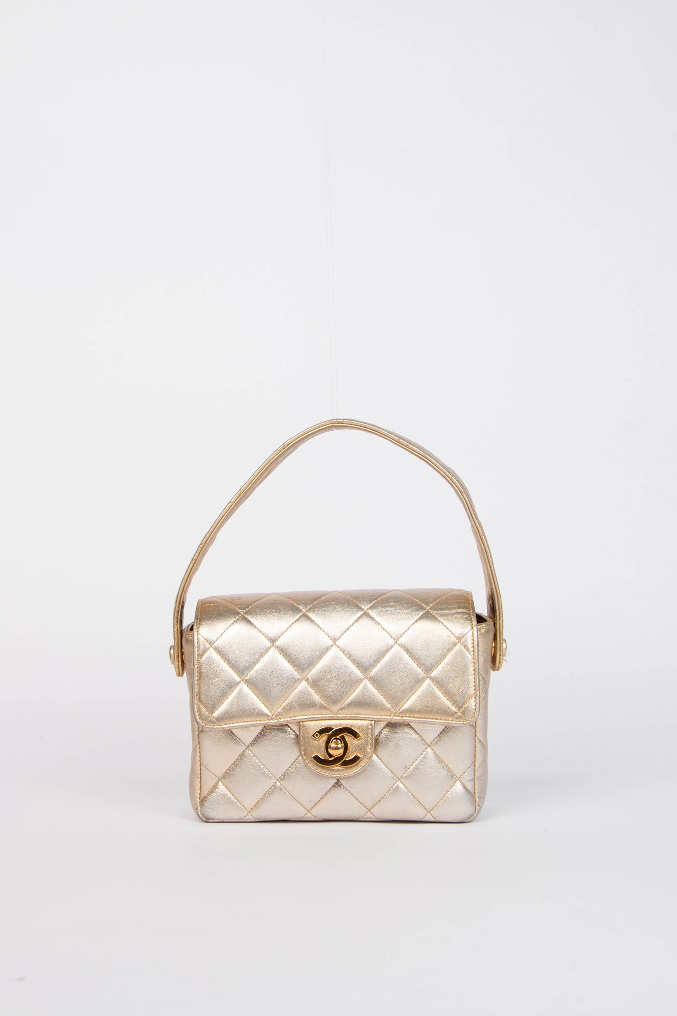 90s Chanel Metallic Lambskin Top Handle Mini Flap Bag