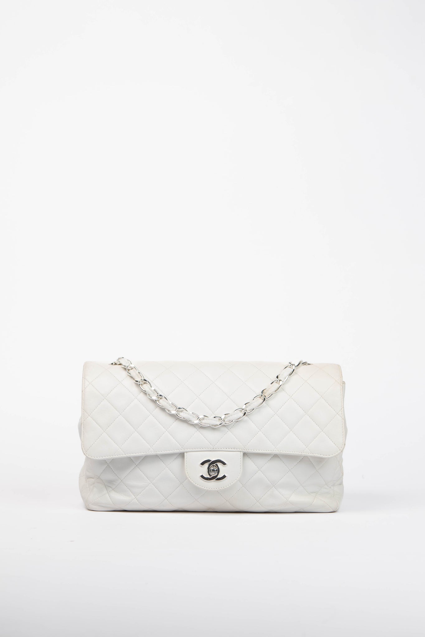 90s Chanel White Lambskin Large Single Flap Shoulder Bag