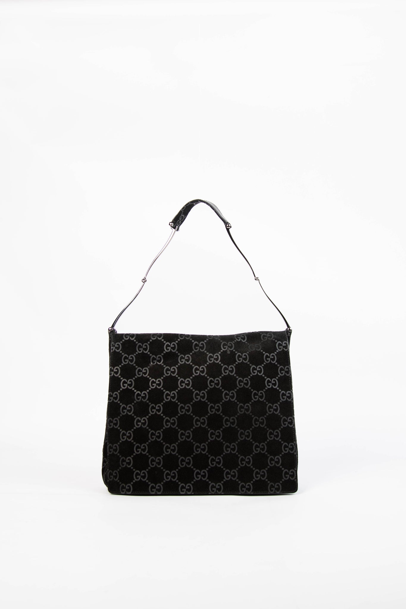 90s Gucci Tom Ford Black Monogram Shoulder Bag with Pouch