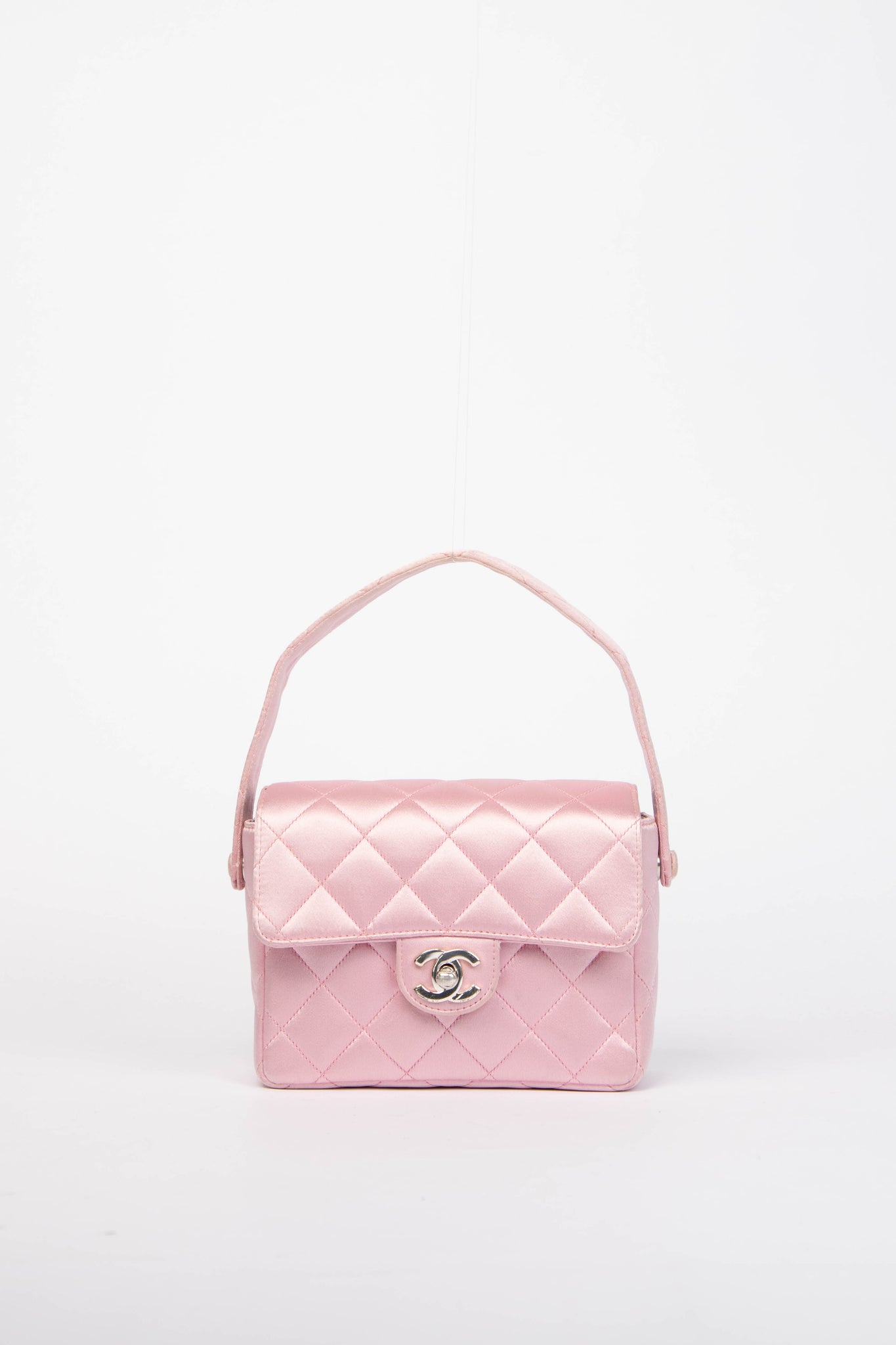RARE 90s Chanel Baby Pink Silk Mini Top Handle Bag