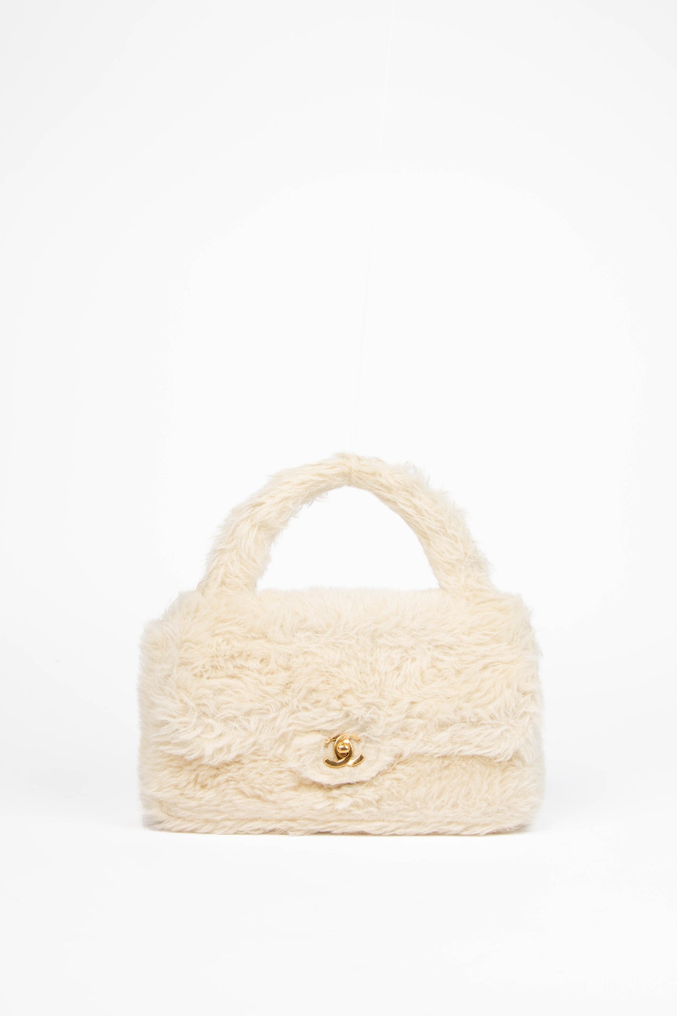 SUPER RARE 90s Chanel Cream Shearling Top Handle Bag