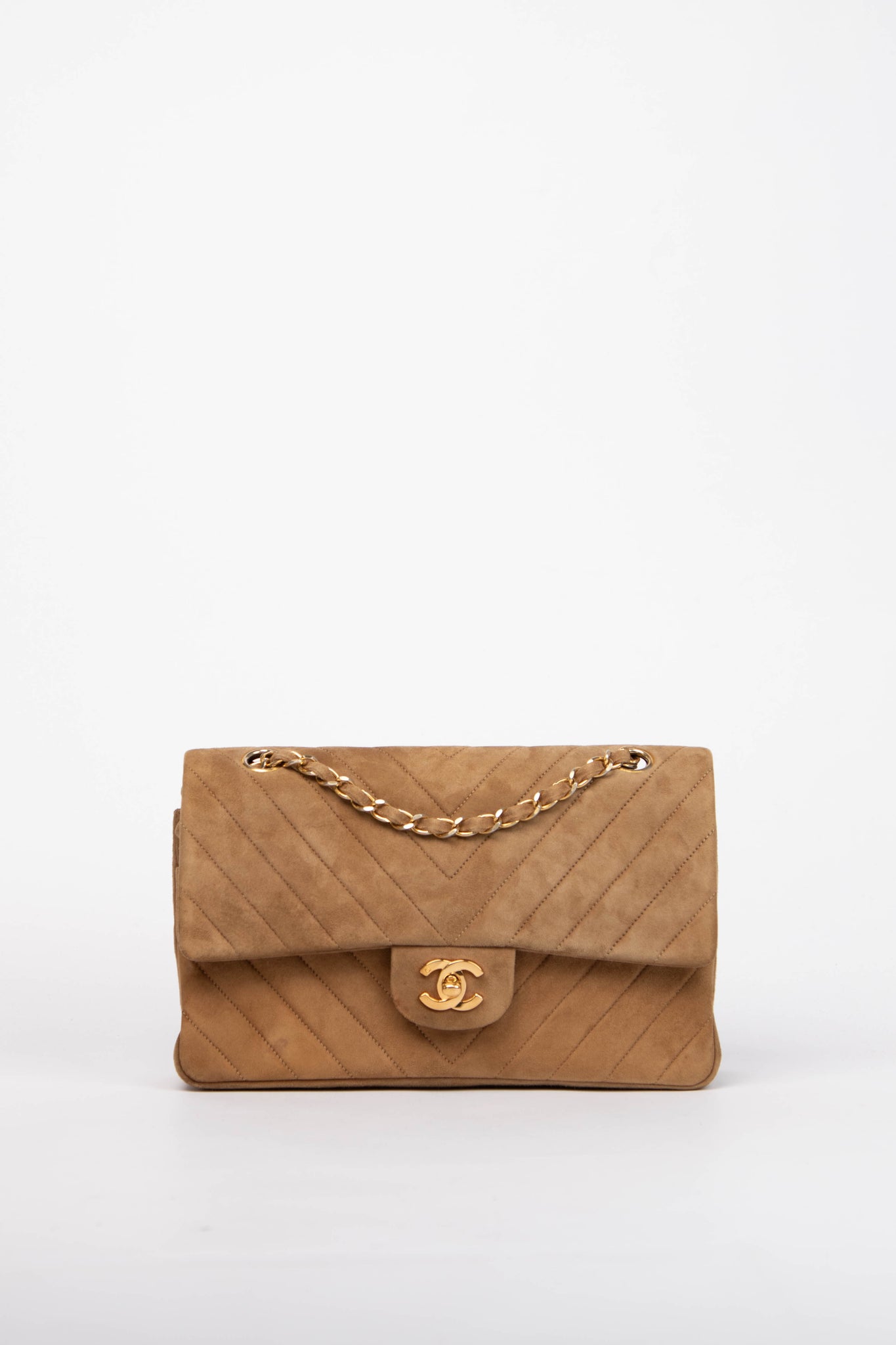 RARE Chanel Chevron Suede Medium Double Flap Bag with 24k GHW