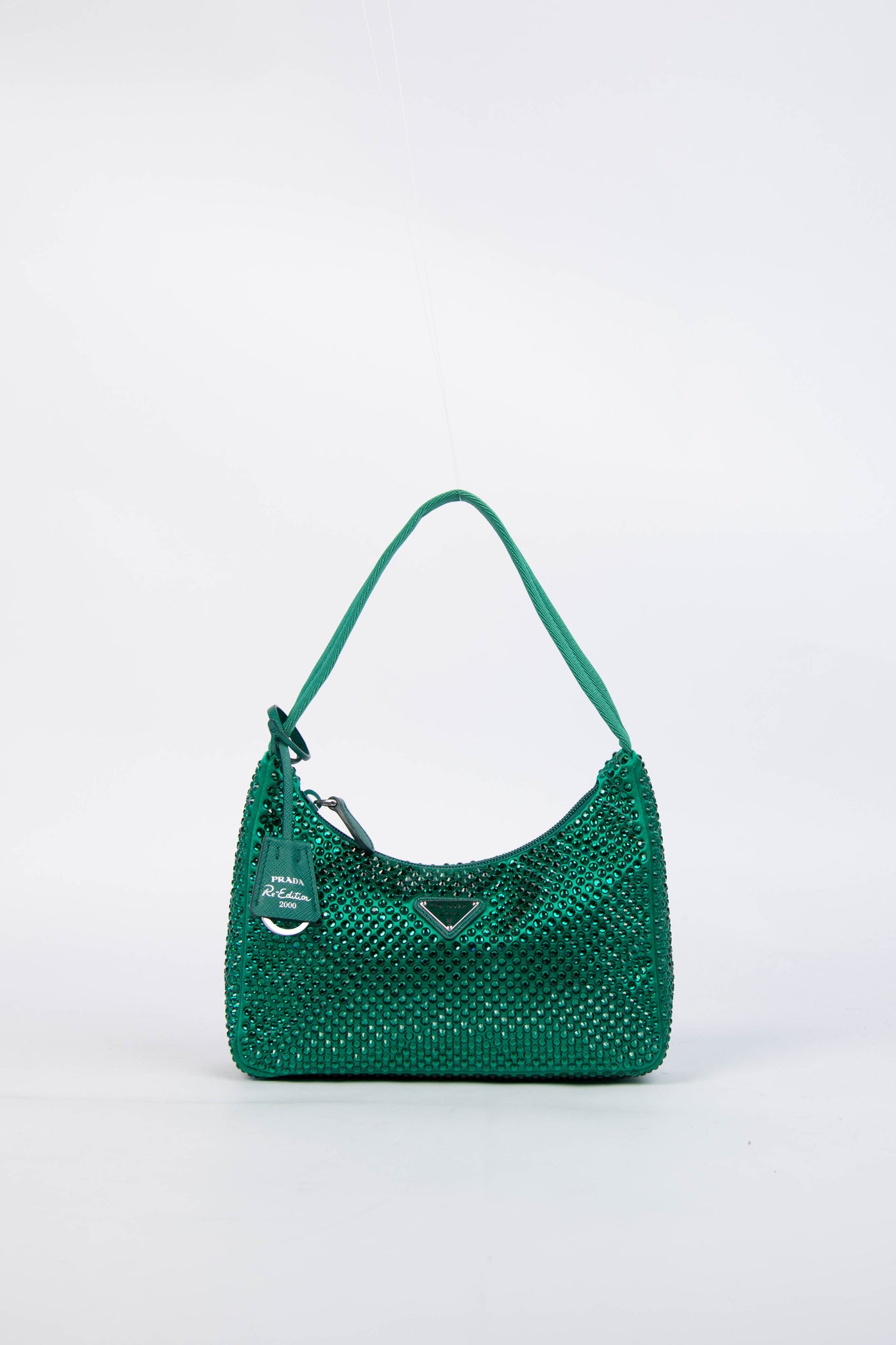 RARE Prada Green Crystal Re-edition 2000 Shoulder Bag