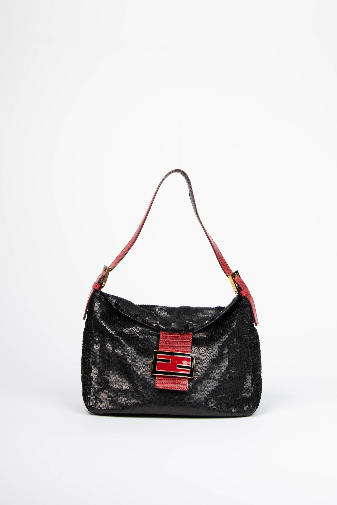 RARE Vintage Fendi Black Sequin Mamma Baguette Shoulder Bag