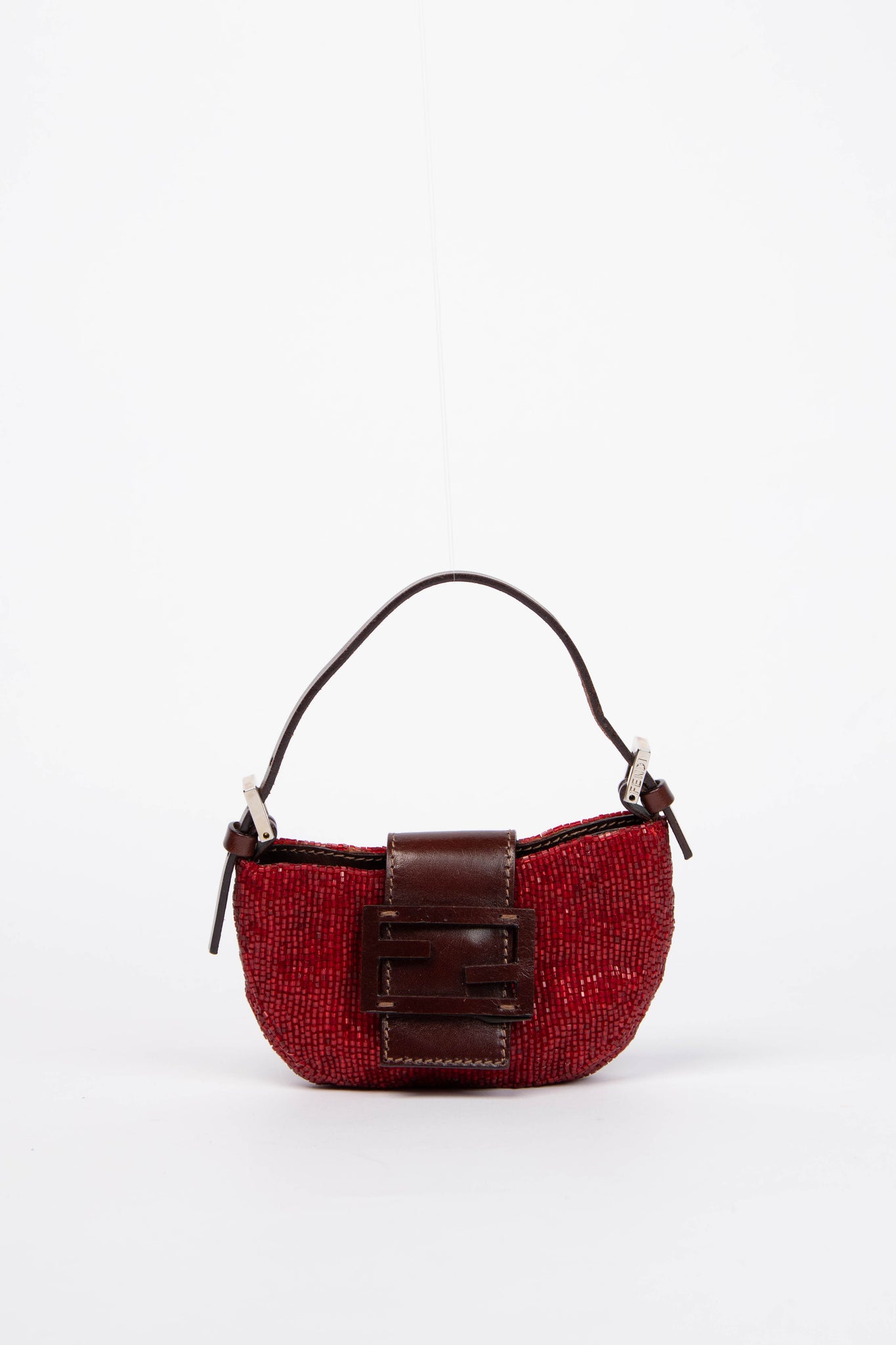 RARE Vintage Fendi Red Beaded Mini Croissant Bag