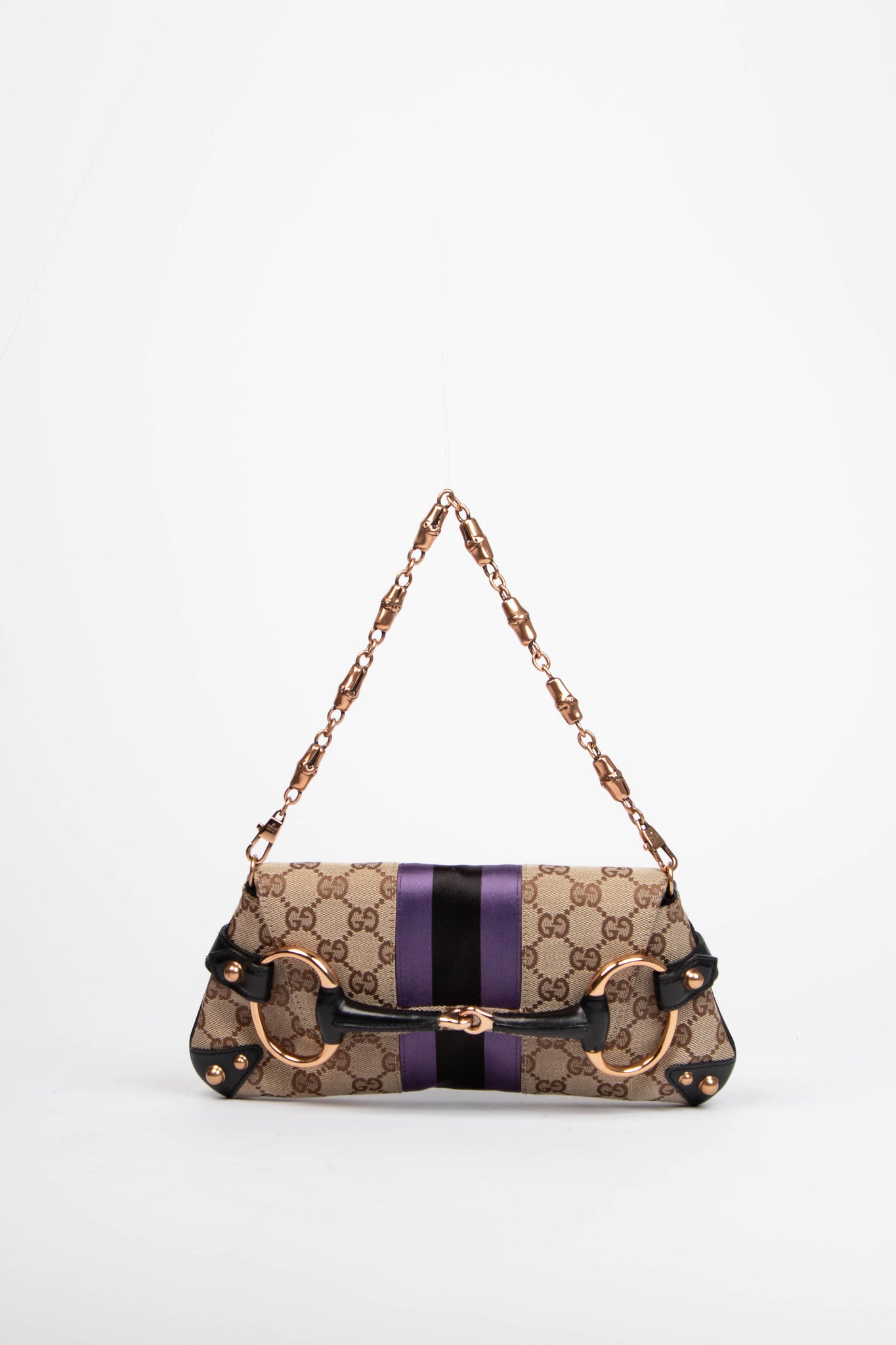 RARE Vintage Gucci GG Classic Monogram Horsebit Shoulder Bag