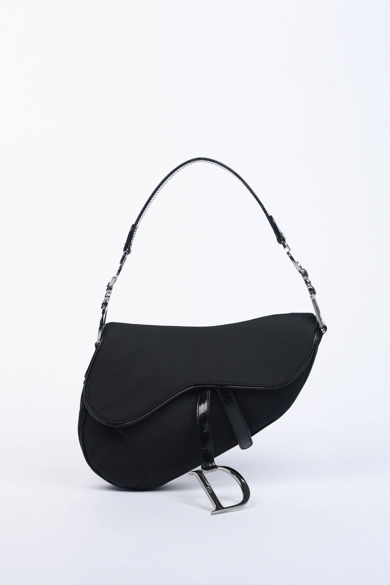 Vintage Christian Dior Black Nylon Saddle Shoulder Bag