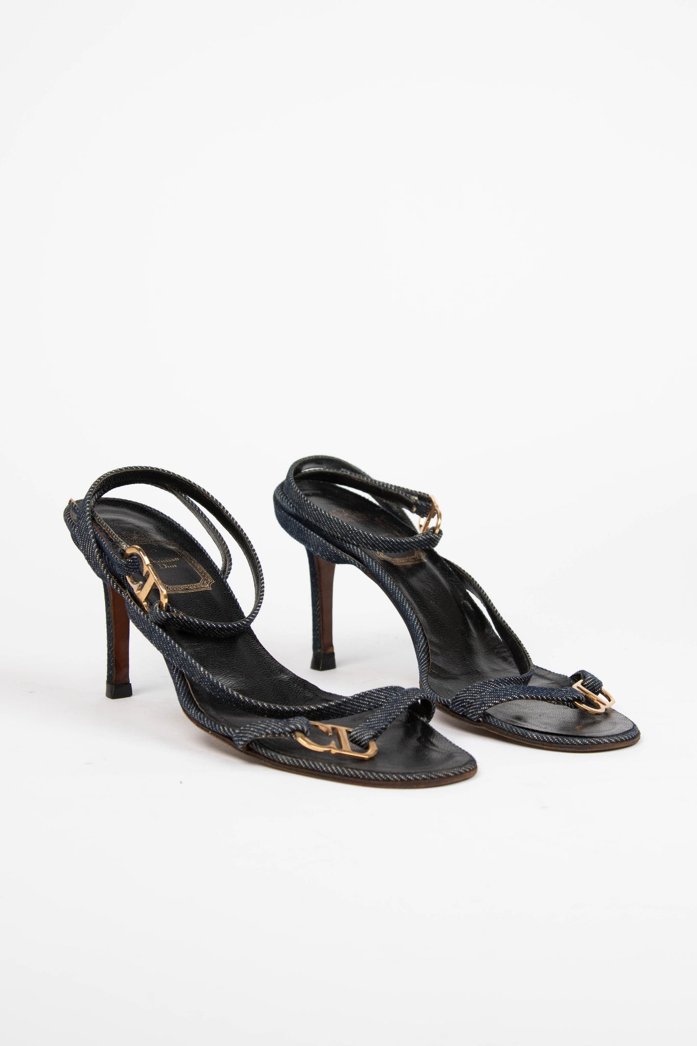 Vintage Christian Dior Denim Wrap Around Kitten Heels (EU 38)