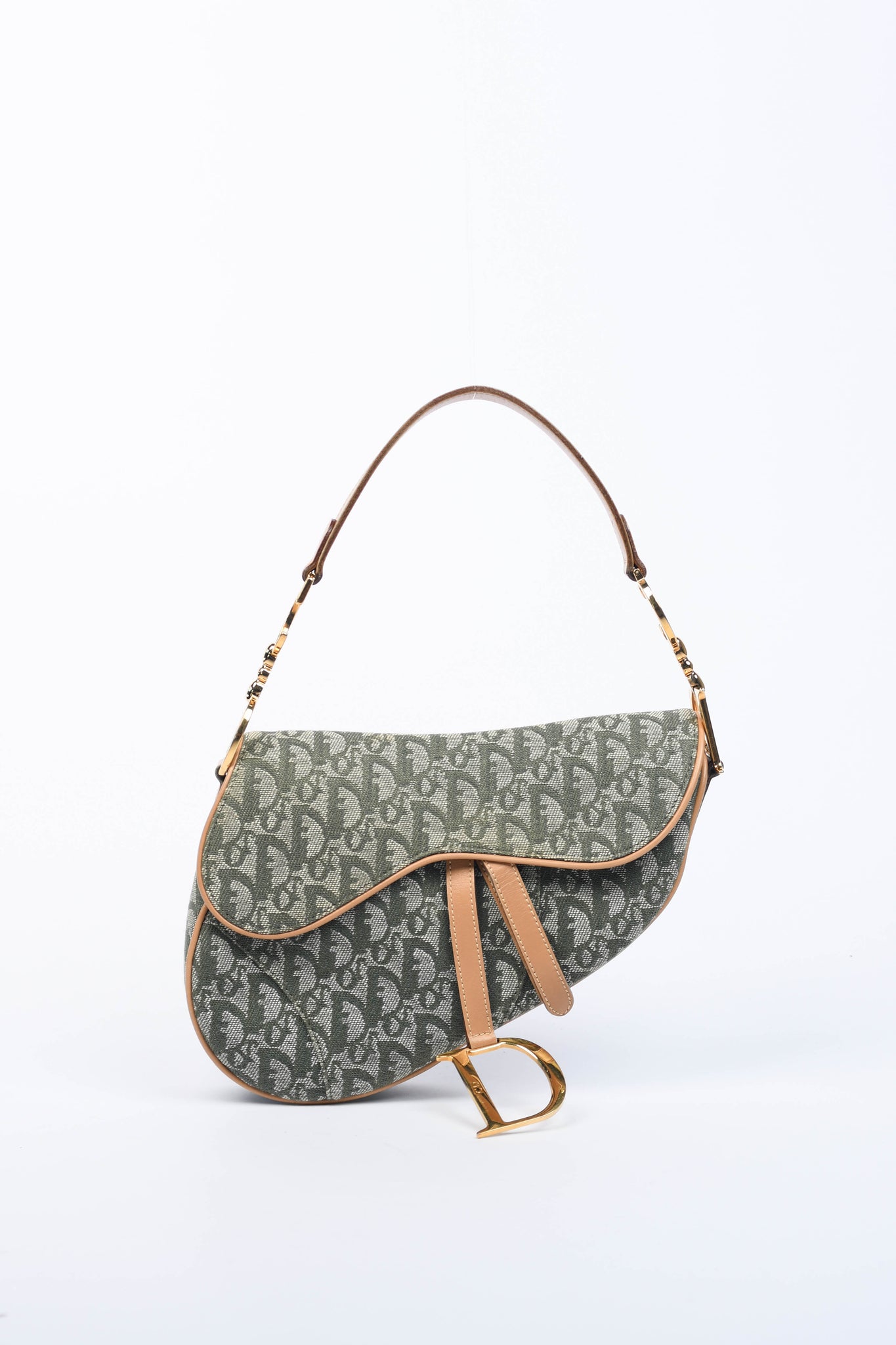 Vintage Christian Dior Green Monogram Saddle Shoulder Bag