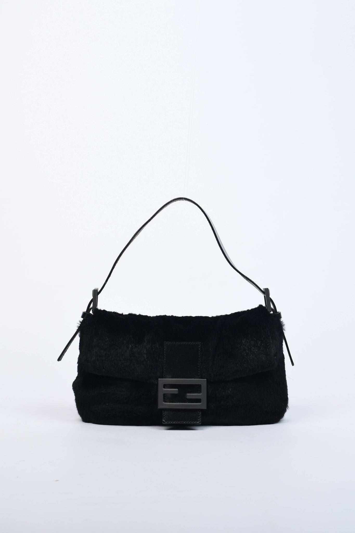 Vintage Fendi Black Fur Baguette Shoulder Bag