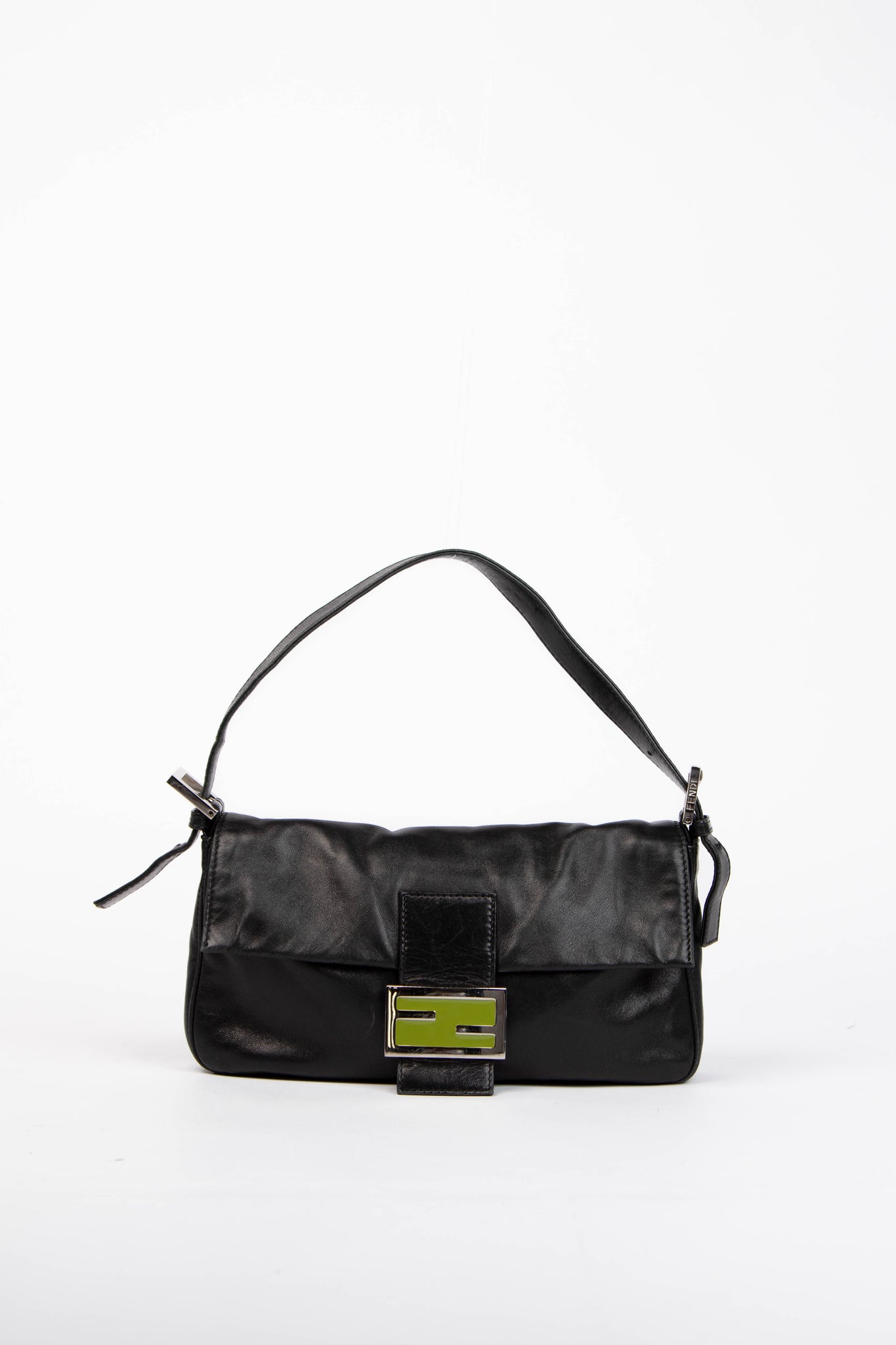 Vintage Fendi Black Lambskin Leather Baguette Bag
