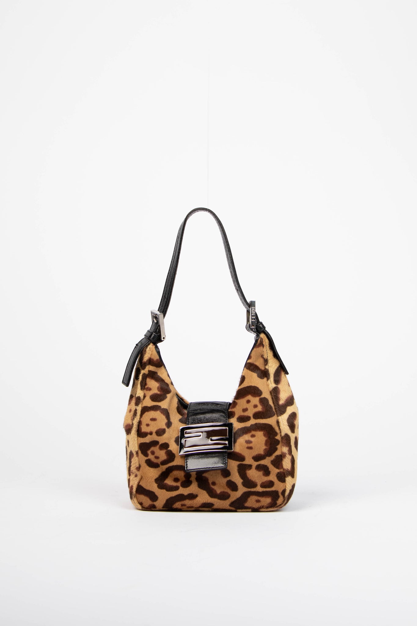 Vintage Fendi Leopard Print Pony Hair Mini Shoulder Bag