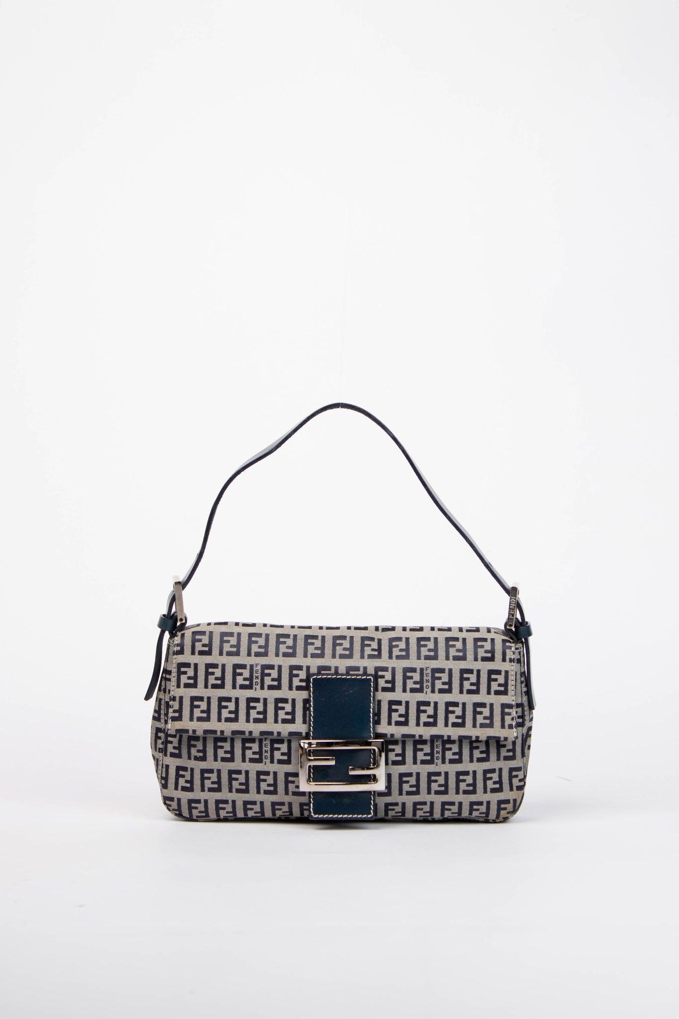Vintage Fendi Navy Zucchino Baguette Shoulder Bag