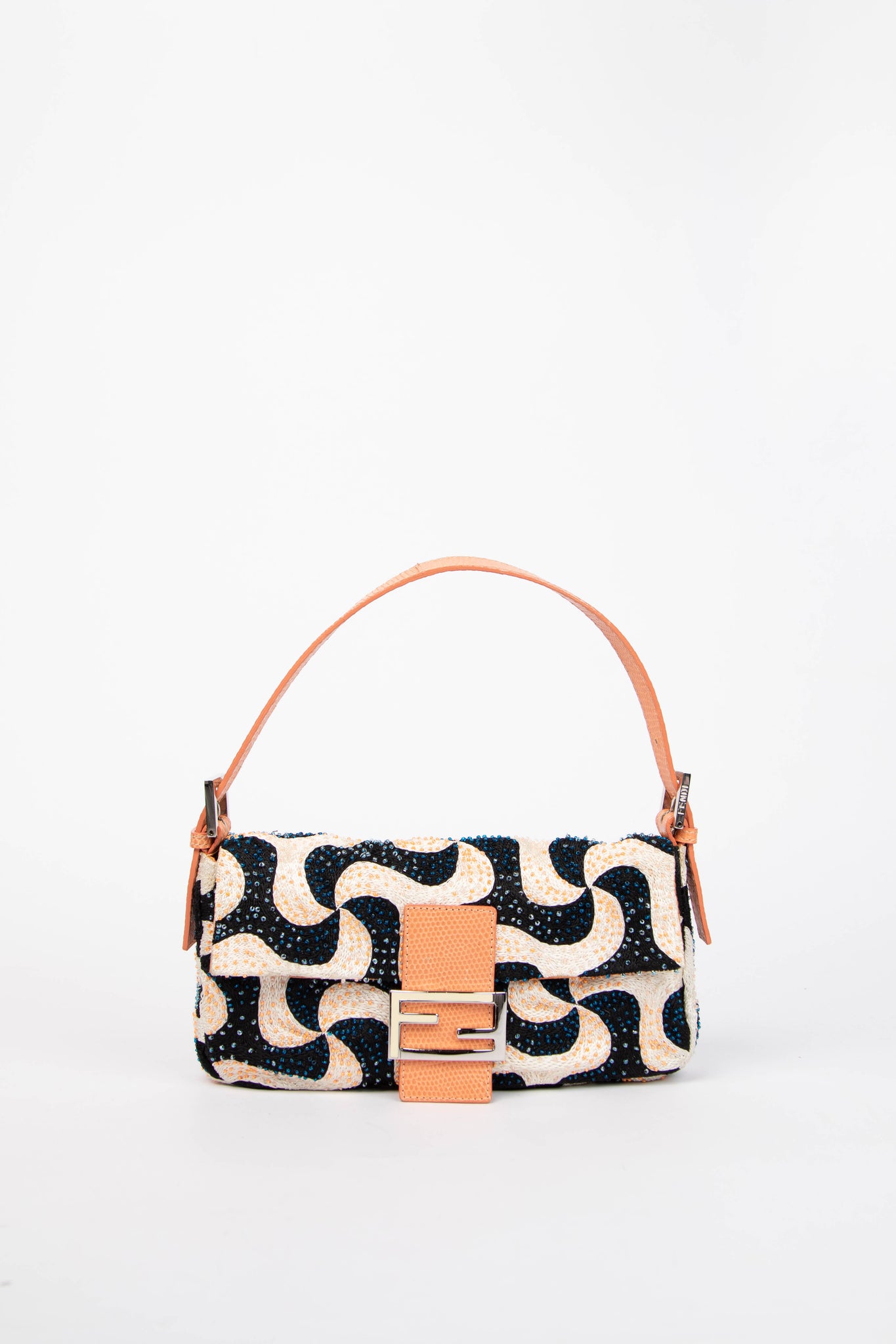 Vintage Fendi Swirl Beaded Baguette Shoulder Bag