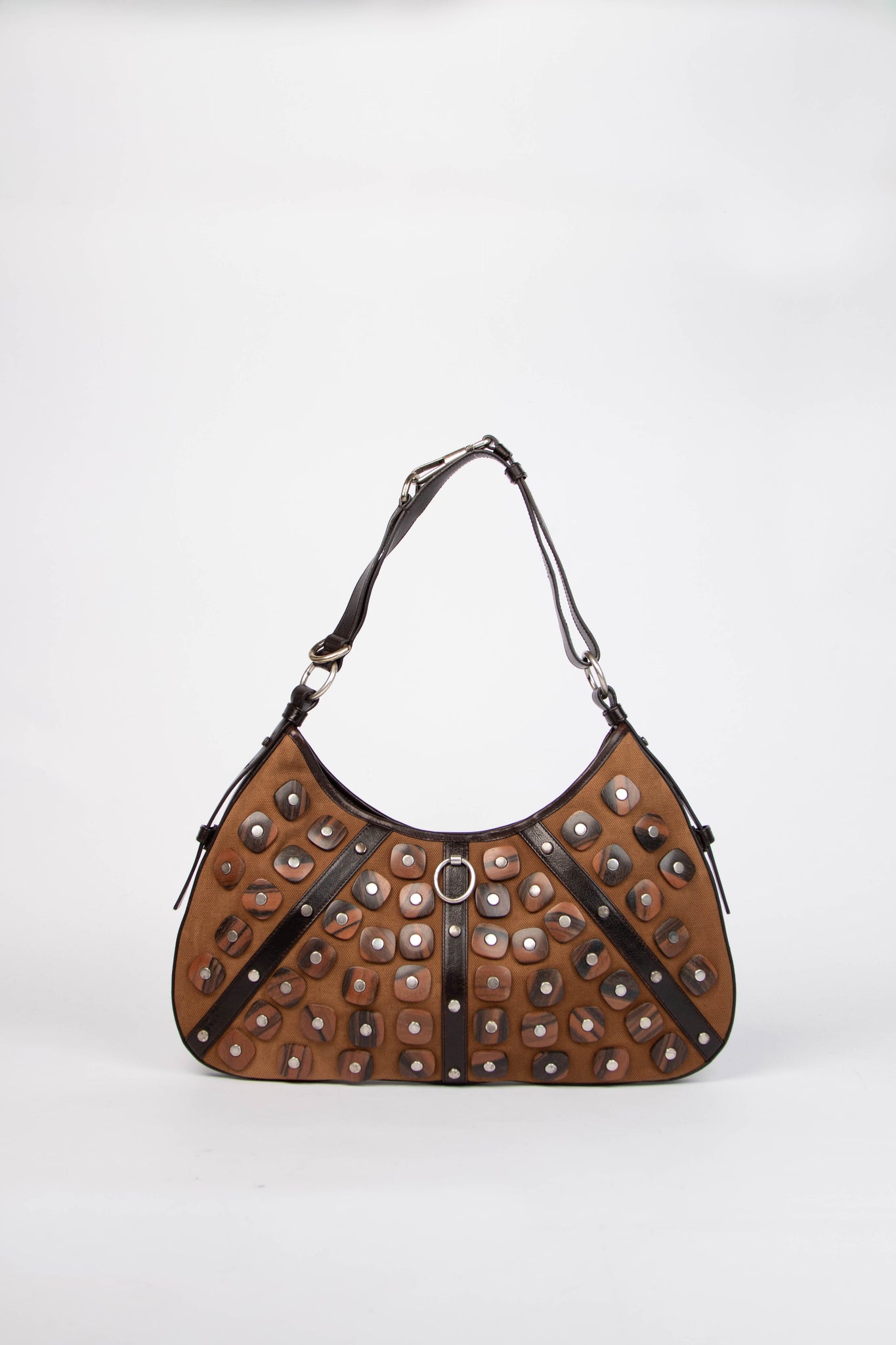 Vintage Yves Saint Laurent Studded Wood Disc Shoulder Bag